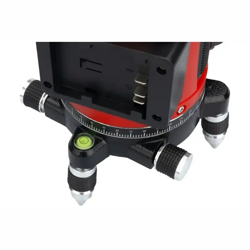 Umožňuje premietanie červeného bodu na podlahu – ideálne pre presné zameranie zhora nadol (pri použití statívu s dutým závitom).
