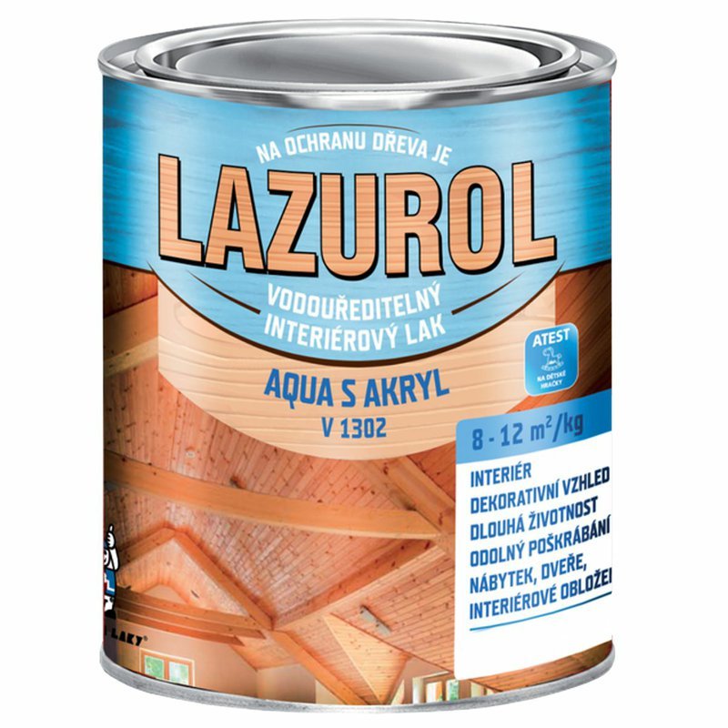 LAZUROL AQUA S AKRYL je disperzný lak s dekoratívnym vzhľadom a vynikajúcim rozlievaním.. Je určený k lakovaniu mäkkého aj tvrdého dreva, nábytkových dielov, dreveného obloženia, preglejky a pod. v interiéroch. Lak je možné použiť aj ako vrchný lesklý alebo matný náter na disperzné farby.