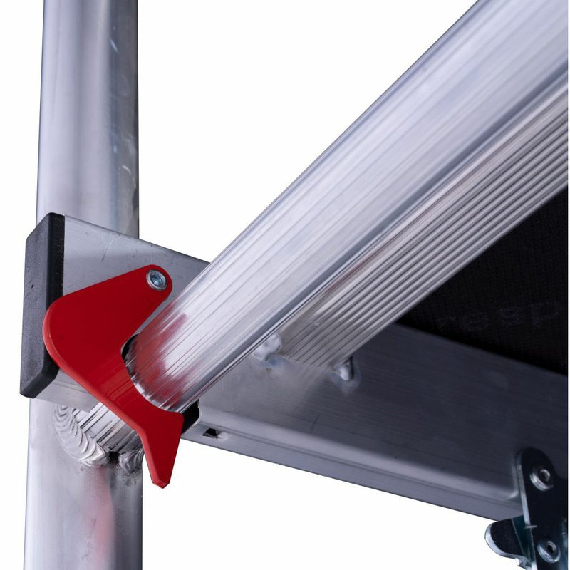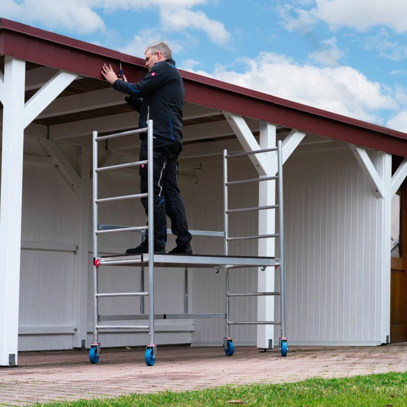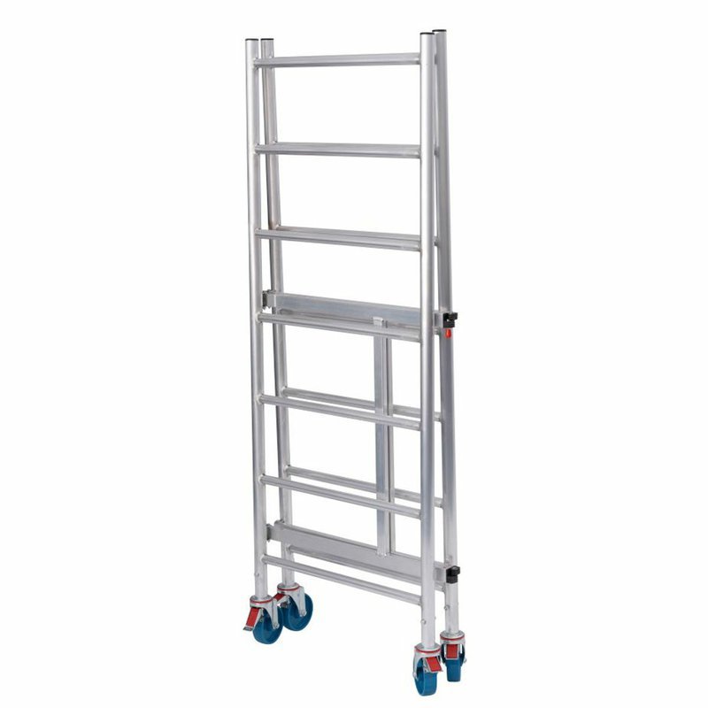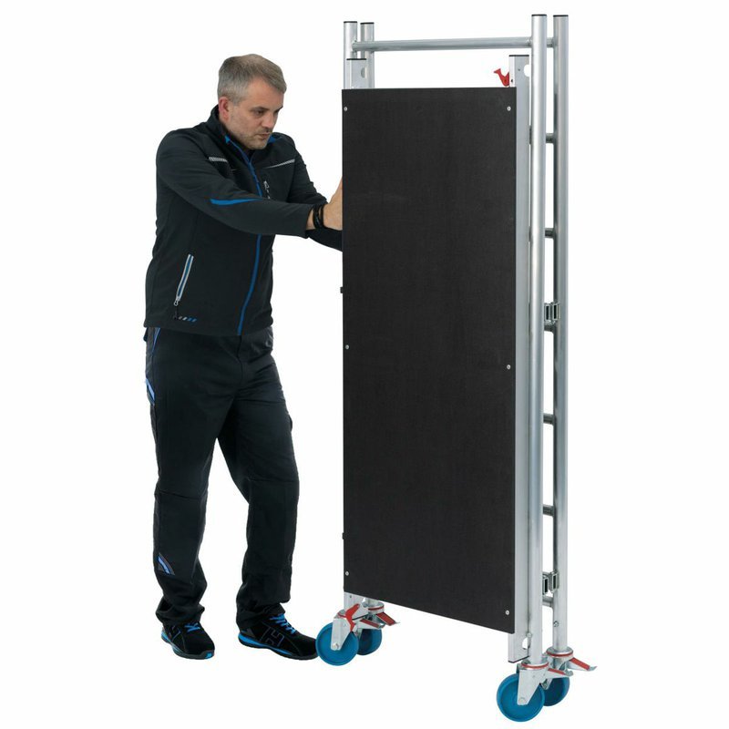 Ľahké a kompaktné lešenie s brzdami na pojazdných kolesách je ideálne pre vnútorné aj vonkajšie práce. Dodáva sa v predmontovaných častiach a po prvotnej montáži sa dá rýchlo a bez použitia náradia rozložiť a zložiť, pozostáva len z dvoch častí: rámu a plošiny. Vyrobené je zo stabilnej hliníkovej rúrky s protišmykovými priečkami. Skladací rám je vybavený jednoducho ovládateľným kĺbom a jeho zabezpečením. Aj v zloženom stave je ľahko prepravovateľné na kolieskach. Plošinu s rýchloupínacím mechanizmom možno zavesiť na zložené lešenie pre jednoduchý transport a úsporné skladovanie. Vďaka kompaktným rozmerom je možné lešenie prepravovať aj cez dvere. Napriek ľahkej konštrukcii ponúka toto kompaktné lešenie vysokú nosnosť. Produkt je certifikovaný TÜV.