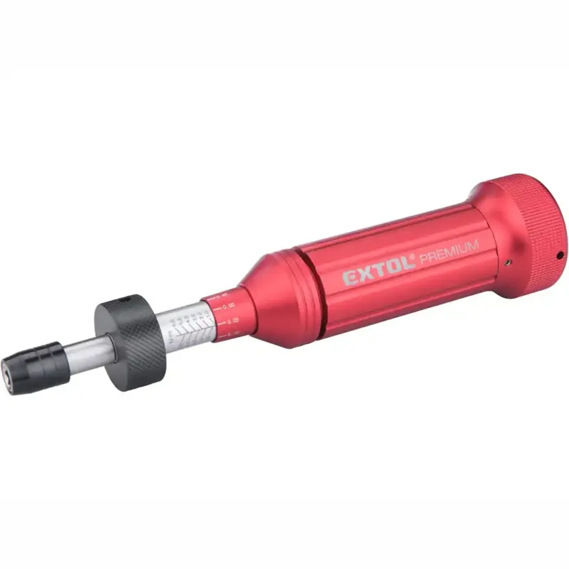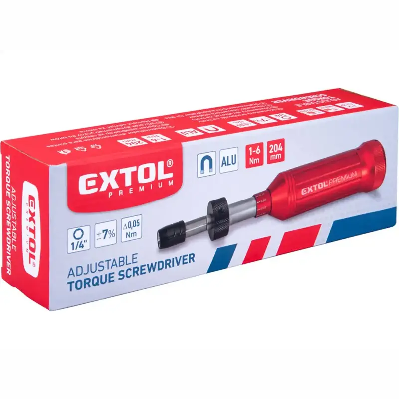 Momentový skrutkovač EXTOL PREMIUM 1/4” so štvorhranom a rozsahom 1–6 Nm je presný nástroj na kontrolované dotiahnutie spojov. Vďaka celokovovému vyhotoveniu, anodizovanej hliníkovej rukoväti a mechanizmu Fix-Clip prináša istotu, dlhú životnosť a opakovateľnú presnosť pri montáži v dielni aj u náročných domácich majstrov.