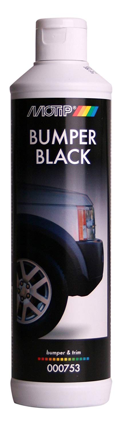 Motip BUMPER BLACK, čiernidlo na plasty 500ml. Prostriedok na údržbu čiernych plastových nárazníkov, ktorý obnovuje farbu a lesk. Chráni proti poveternostným vplyvom, znižuje priľnavosť nečistôt. Obsahuje silikón. Povrch by mal byť čistý a suchý. Naneste suchou handričkou a intenzívne leštite dovtedy, kým neodstránite poškodenie. Nechajte zaschnúť. Potom vyleštite suchou tkaninou, kým nedosiahnete lesk.