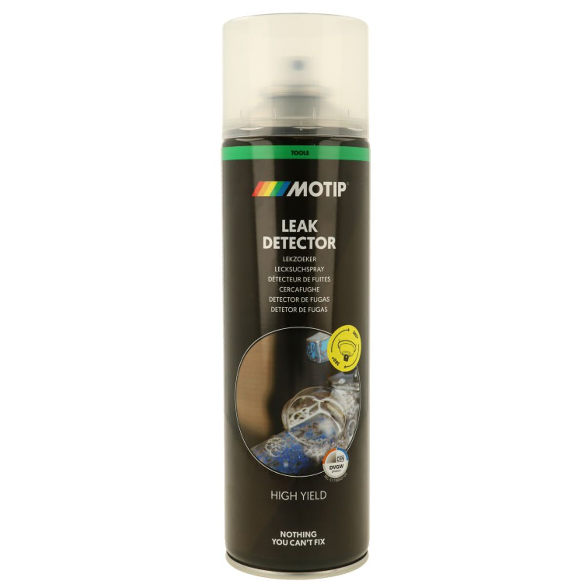 Motip LEAK DETECTOR, detektor úniku plynu v spreji 400ml. Sprej slúžiaci k zisteniu netesnosti v plynovom potrubí.. Nehorľavý. Možno odstrániť vodou. Antikorózny. Mierne zásaditý. Mierne penivý.