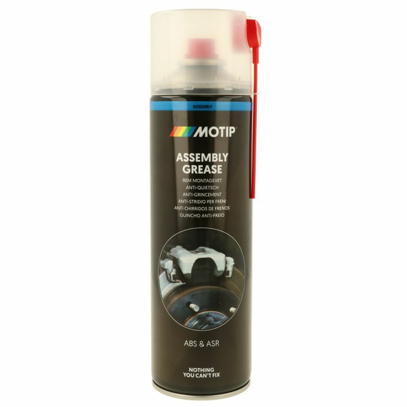 MOTIP Tuk na montáž bŕzd, nekovové mazivo v spreji na brzdové platničky. Zabraňuje zapečeniu brzdových platničiek a iných častí brzdového systému. Vysoká tepelná stálosť a odolnosť voči chemickým prostriedkom a poveternostným vplyvom. Uľahčuje demontáž pri výmene brzdových platničiek.