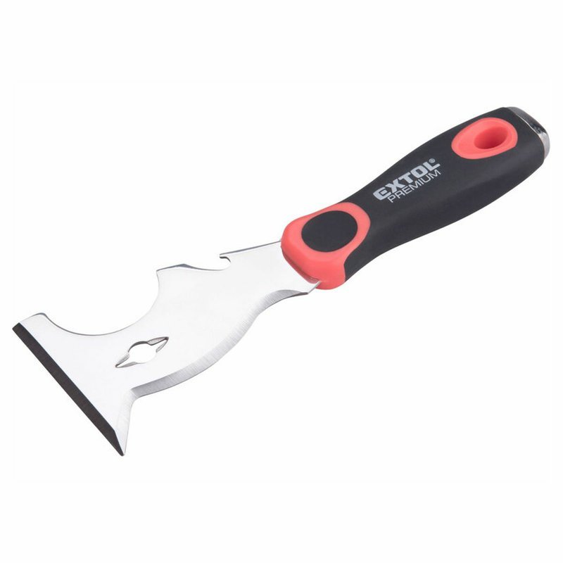 Multifunkčná nerezová maliarska špachtľa EXTOL Premium je ideálnym nástrojom pre profesionálnych maliarov, natieračov a tapetárov, ktorý výrazne uľahčí prípravné stavebné a maliarske práce. S jediným nástrojom zoškrabete farbu a zachnuté omietky, nátery z rúr, narušíte staré tapety, či vytiahnete klince zo steny. S kvalitnou čepeľou vyrobenou z tuhej antikorovej ocele s hrúbkou 2mm a vysokým leskom poskytuje výbornú odolnosť a dlhú životnosť. Rukoväť je ergonomicky navrhnutá, kombinuje plast a mäkkú gumu, čo zaručuje pohodlné a bezpečné držanie aj pri dlhšej práci. Kovové zakončenie rukoväte zaisťuje pevnosť a stabilitu, čo je nevyhnutné pri odstraňovaní starých náterov, škrabaní omietok či ryhovaní. Tento nástroj je skvelým pomocníkom pre širokú škálu prípravných prác, čím šetrí čas a zvyšuje efektivitu.