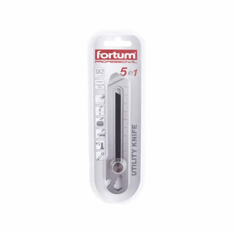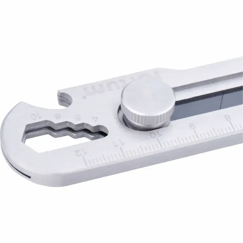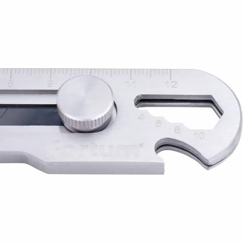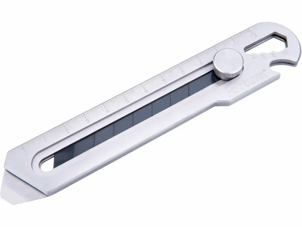 Univerzálny olamovací nôž FORTUM antikoro je praktický pomocník do dielne aj domácnosti. Vďaka pevnému telu z nerezovej ocele, aretačnej skrutke pre bezpečné zafixovanie čepele a viacúčelovým funkciám spoľahlivo zvládne rezanie kartónu, fólií, tapiet aj rôznych hobby materiálov.