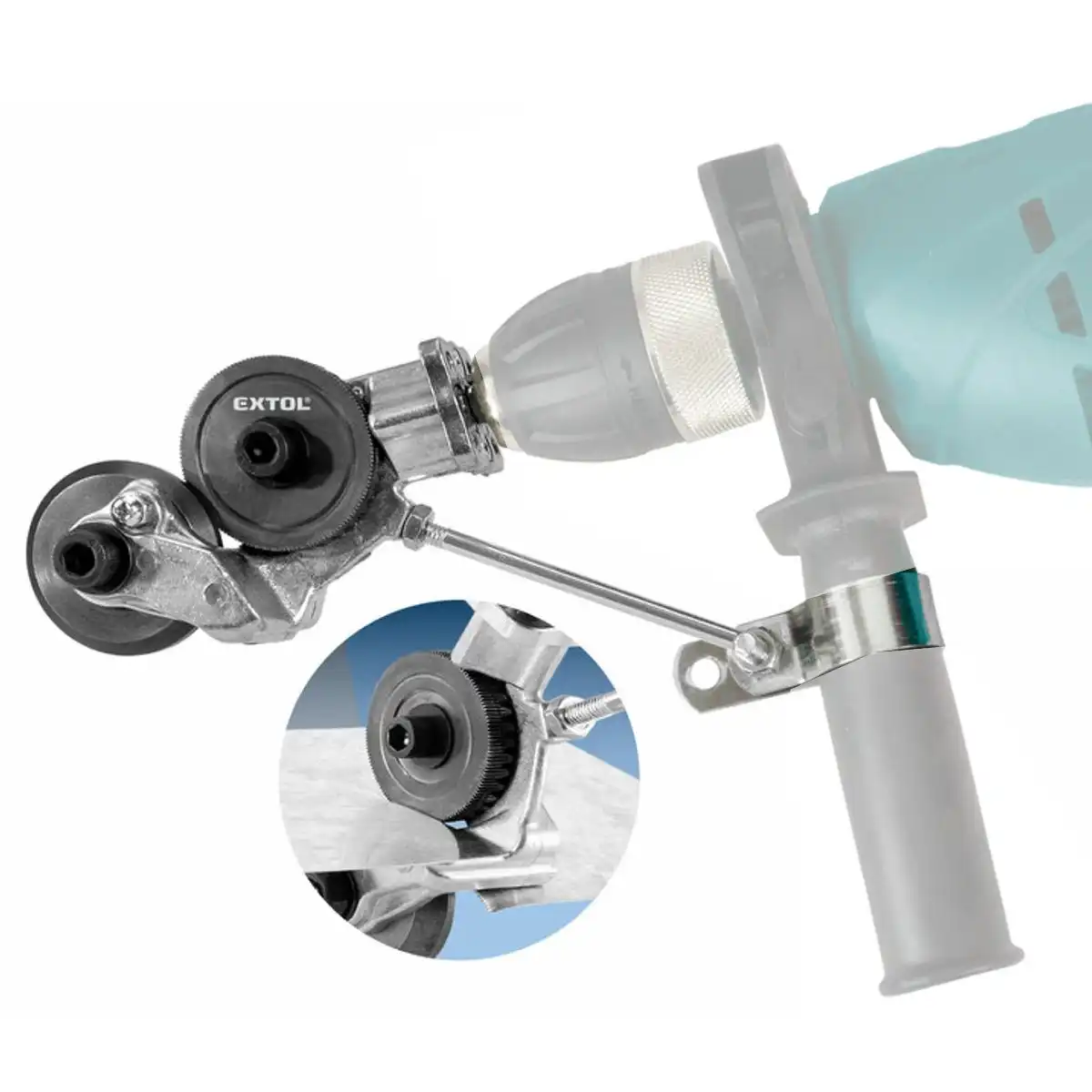 Nadstavec na strihanie plechu do vŕtačky EXTOL je praktické príslušenstvo pre rýchle a čisté delenie tenkých plechov. Jednoducho sa upína do bežnej vŕtačky cez 1/4” šesťhran a zvládne oceľové aj neželezné materiály, vďaka čomu je ideálny pre montáže, opravy a hobby projekty.