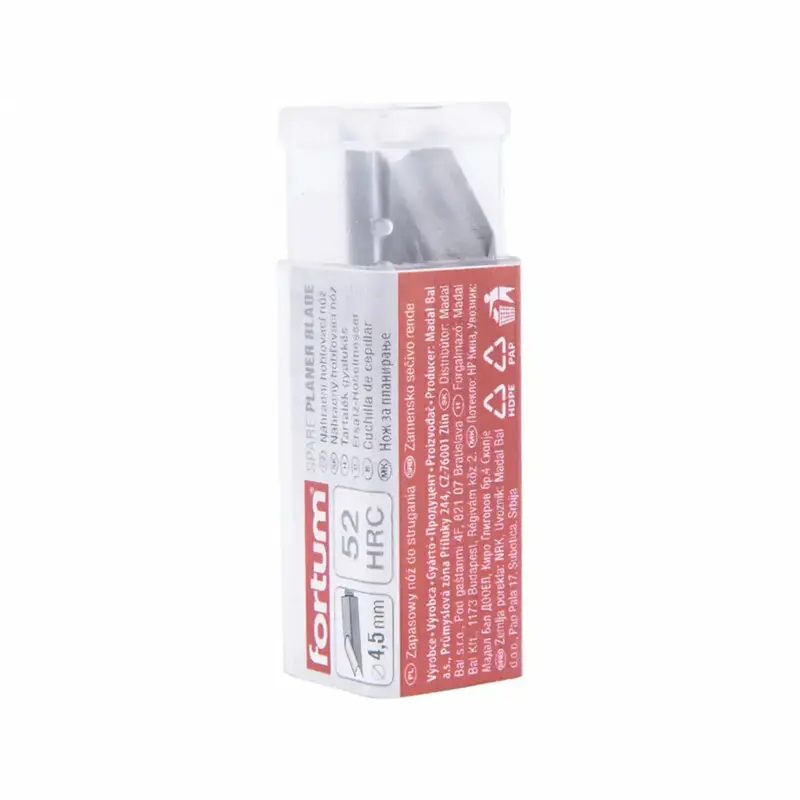 Náhradný profilový nôž pre hoblík je určený na rýchle a presné zrážanie hrán s polomerom R4,5 mm. Kompatibilita s hoblíkom FORTUM 4752104 zaručuje čisté zaoblenie hrán na dreve a materiáloch na báze dreva, bez zbytočného vytrhávania vlákien.
