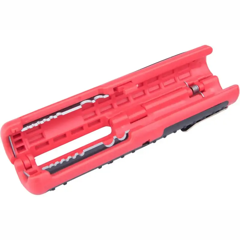 Univerzálny nástroj na odizolovanie je praktická pomôcka pre rýchlu a čistú prípravu káblov pri elektroinštaláciách aj bežných opravách. Je navrhnutý pre presné odizolovanie vodičov a káblov vďaka jednoduchej manipulácii a pohodlnej rukoväti.