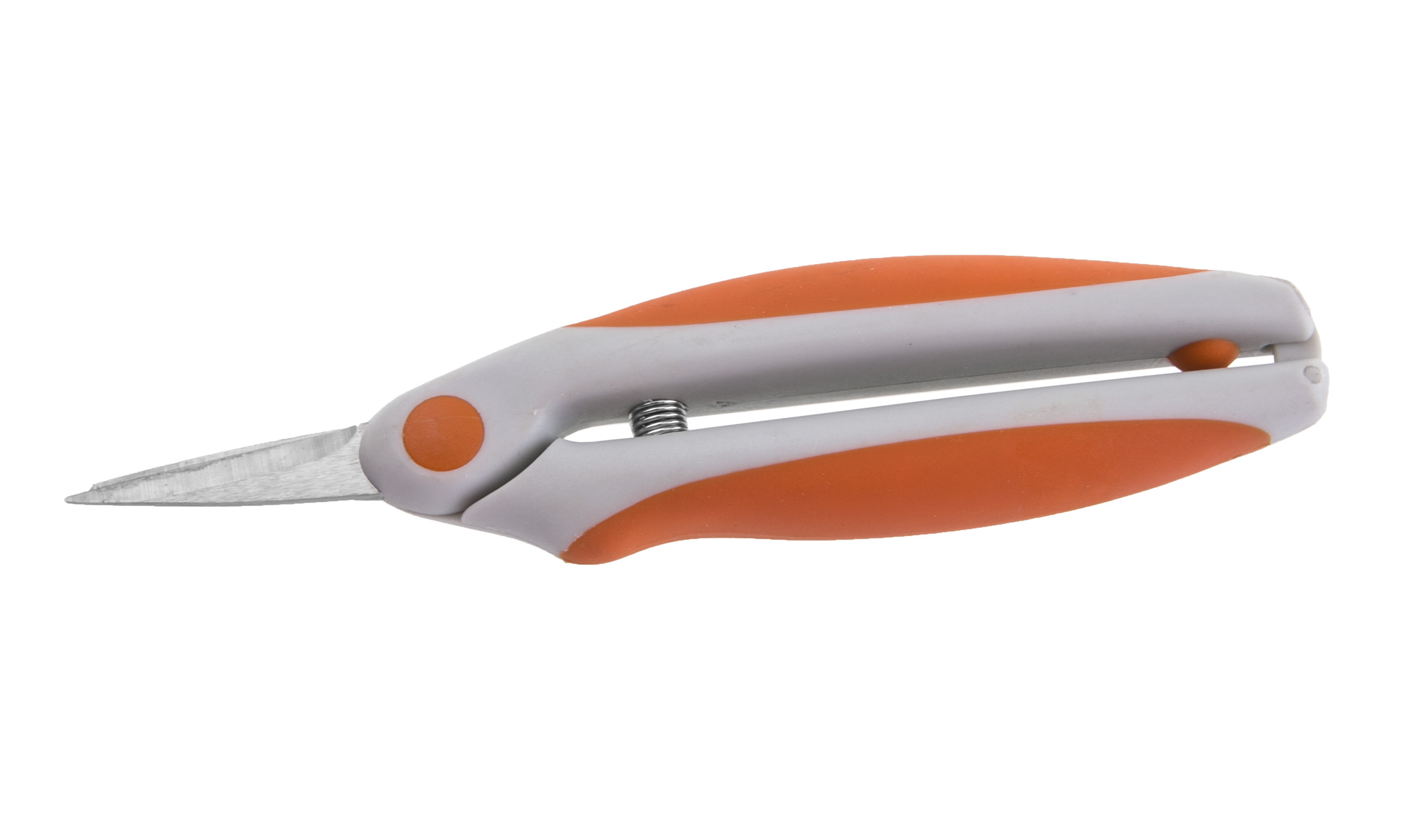 Záhradnícke nožnice na kvety s nerezovou čepeľou, nylonové rukväte s mäkčenou protisklzovou TPR gumou, hrdzi odolná pružina, rovné ostřie, poistka na otváranie a zatváranie, dĺžka 160 mm.