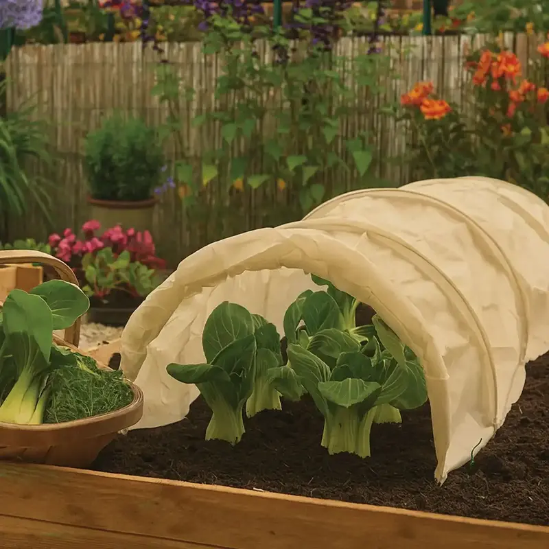 Ľahká plachta sa jednoducho rozvinie a prehodí cez rastlinu, čo šetrí čas pri príprave záhrady na zimu.