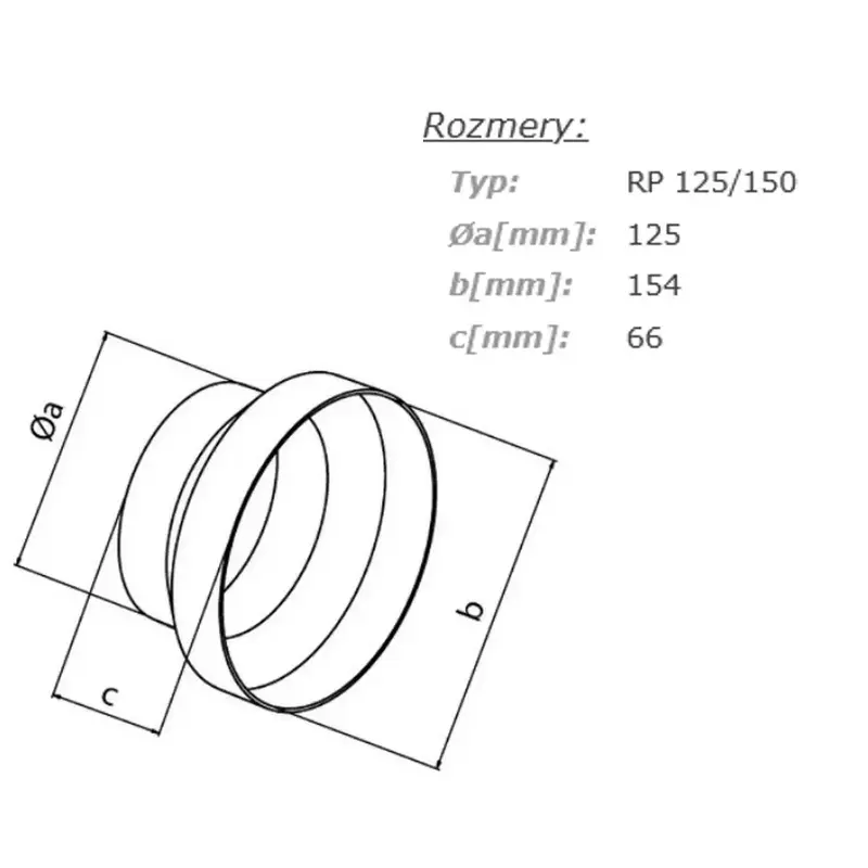 Slúži ako prechodový diel na spojenie okrúhleho ventilačného potrubia s rôznym priemerom, aby ste mohli plynulo napojiť jednotlivé časti systému.