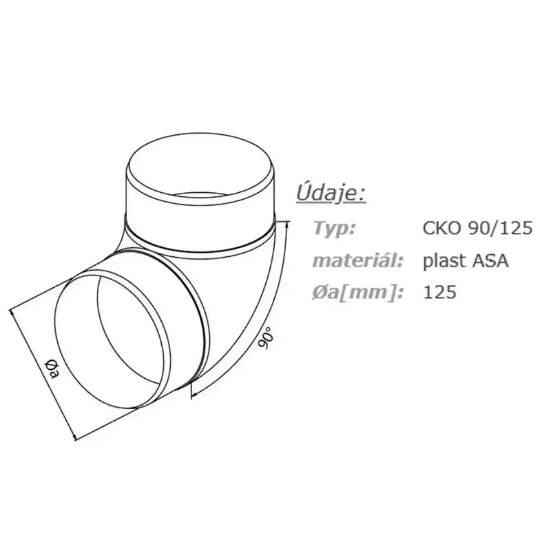 Parametre produktu Okrúhle koleno 90°, priemer 125mm na ventilačné potrubie, plastové, biele, HACO CKO