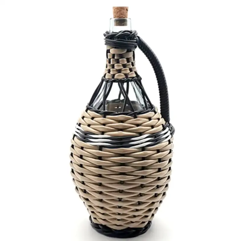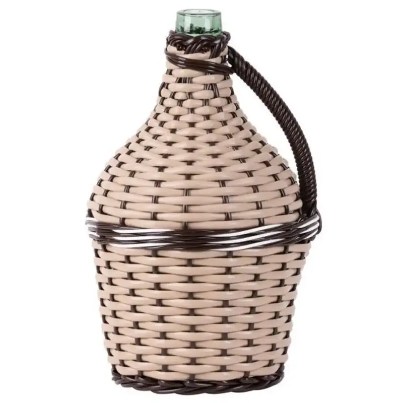 Opletaný demižón s korkovou zátkou je praktická nádoba na skladovanie a prenášanie tekutín. Ochranné opletenie zlepšuje manipuláciu a chráni povrch demižóna, zatiaľ čo prírodná korková zátka zabezpečí spoľahlivé uzavretie. Ideálna voľba pre každého, kto hľadá odolný a estetický demižón na víno alebo liehoviny.