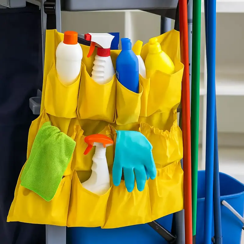Kapsár STANDART žltý 74×52 cm je praktický organizér na čistiace prostriedky a drobnosti. Vďaka 12 vreckám poskytuje prehľadné uloženie pomôcok, šetrí priestor a zjednodušuje upratovanie v domácnosti aj v profesionálnych prevádzkach.