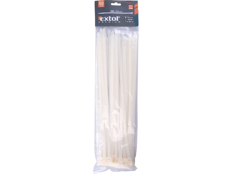 Pásky sťahovacie biele, 7,6x380mm, 50ks, pr.100mm, 55kg