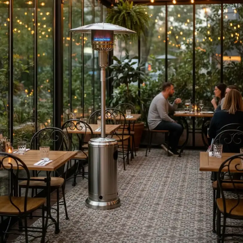Plynový terasový ohrievač HELIOS je ideálnym riešením pre spríjemnenie pobytu na terase, v záhrade aj vo vonkajších komerčných priestoroch. Vďaka nastaviteľnému výkonu, piezoelektrickému zapaľovaniu a bezpečnostnému systému proti prevráteniu prináša spoľahlivé a pohodlné vykurovanie tam, kde potrebujete okamžitý tepelný komfort.