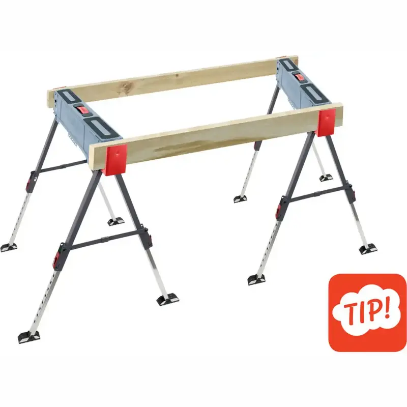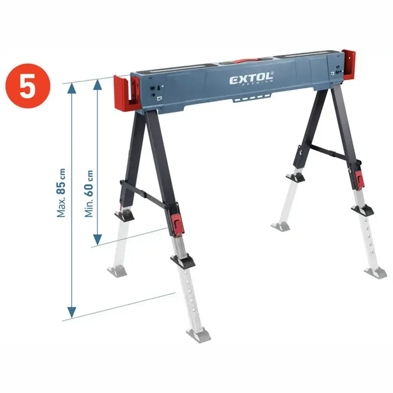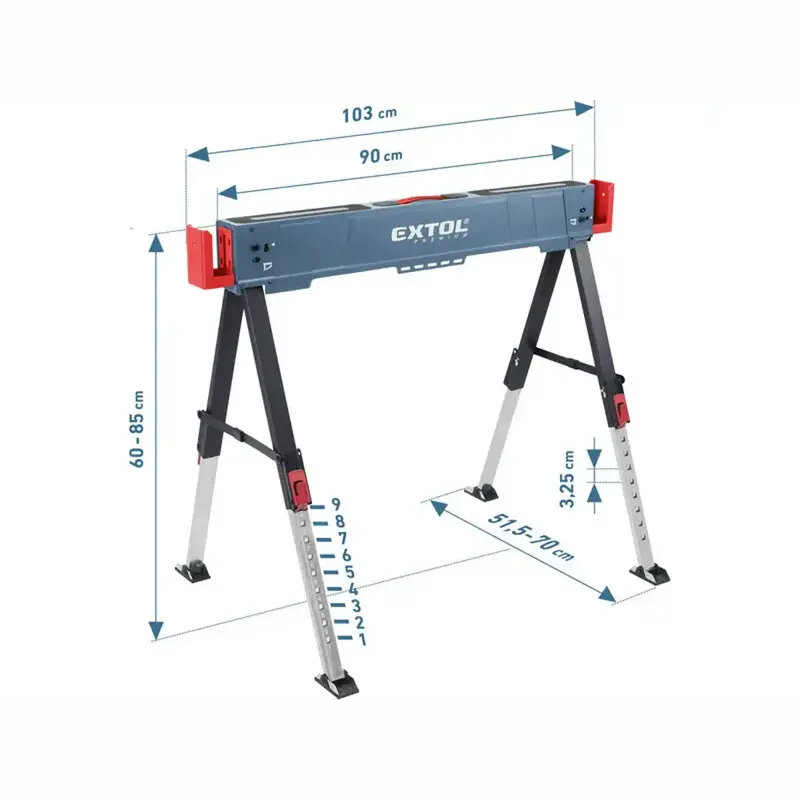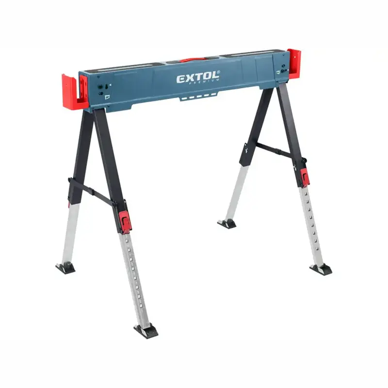 Skladací kovový pracovný podstavec – koza je praktická podpera do dielne aj na stavbu, keď potrebujete stabilné a pevné pracovné miesto. Robustná oceľová konštrukcia, protišmyková horná plocha a možnosť výškového nastavenia z neho robia spoľahlivého pomocníka pri rezaní, montáži, brúsení či skladaní materiálu.