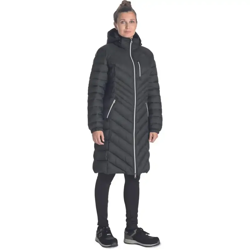 Dlhý olivovo zelený dámsky pracovný kabát je súčasťou kolekcie pracovných odevov L-SURE SYLVIA LADY. Elegantný vzhľad a praktické prevedenie sú vhodné pre profesionálne prostredie aj firemné reprezentatívne outfity.