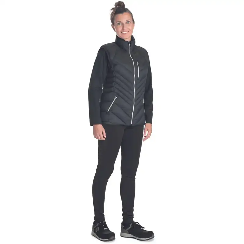 Zateplená dámska pracovná vesta v čiernej farbe, ktorý spája eleganciu, pohodlie a profesionálny vzhľad. Ideálne pre ženy, ktoré chcú pôsobiť upravene a štýlovo v pracovnom prostredí.
