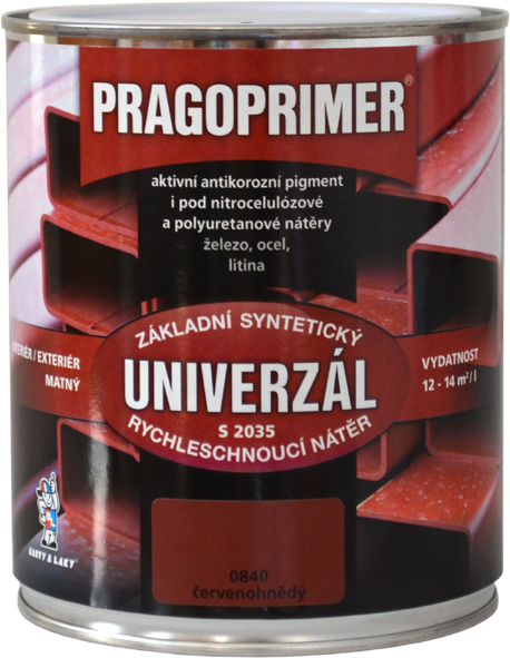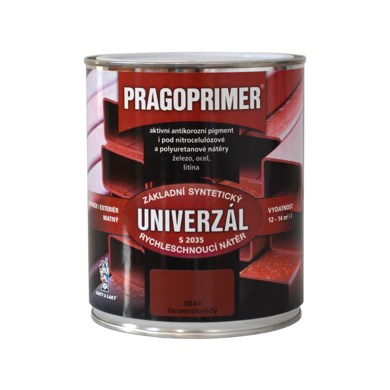 Farba PRAGOPRIMER UNIVERZAL je určená k základným náterom kovových predmetov pod syntetické, olejové a nitrocelulózové náterové látky. Má výborné antikorózne vlastnosti a široké možnosti použitia v interiéri aj v exteriéri.