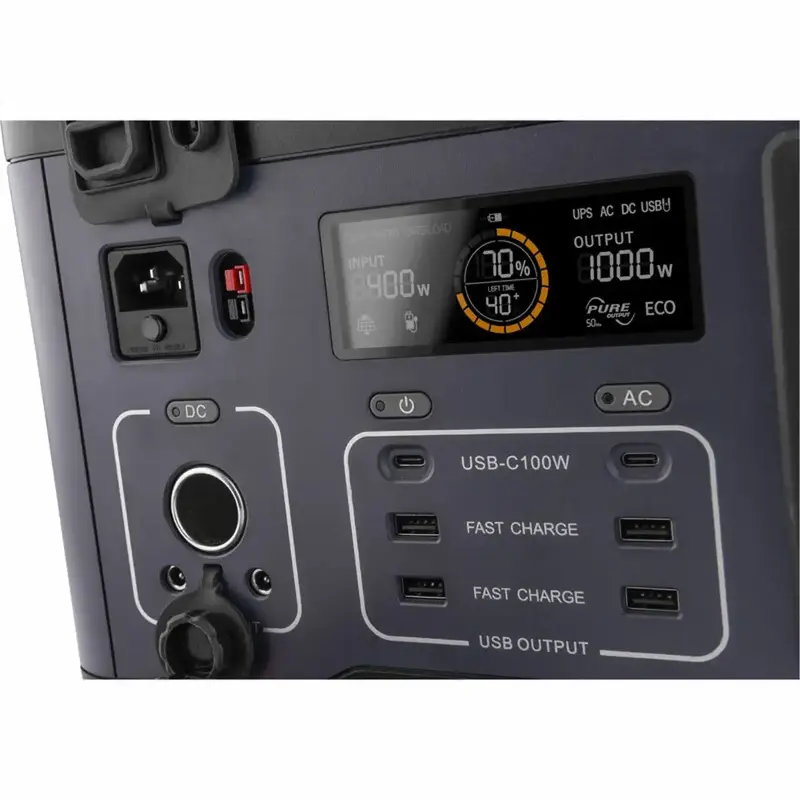 Výstupy 230 V umožňujú napájať množstvo zariadení v domácnosti aj v teréne – od osvetlenia až po vybrané náradie a elektroniku v rámci výkonových možností stanice.