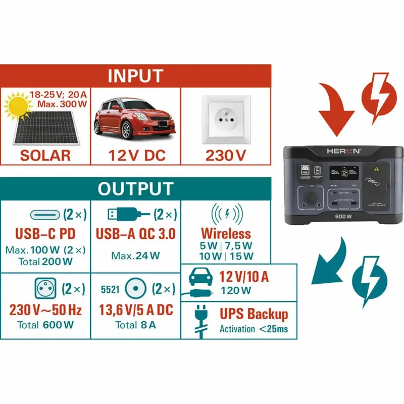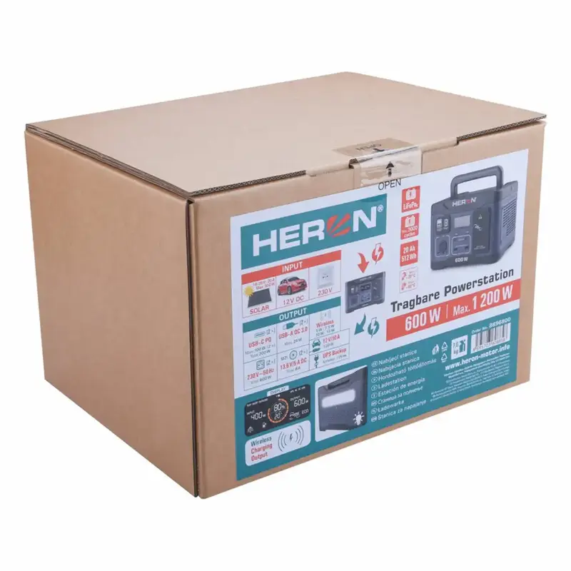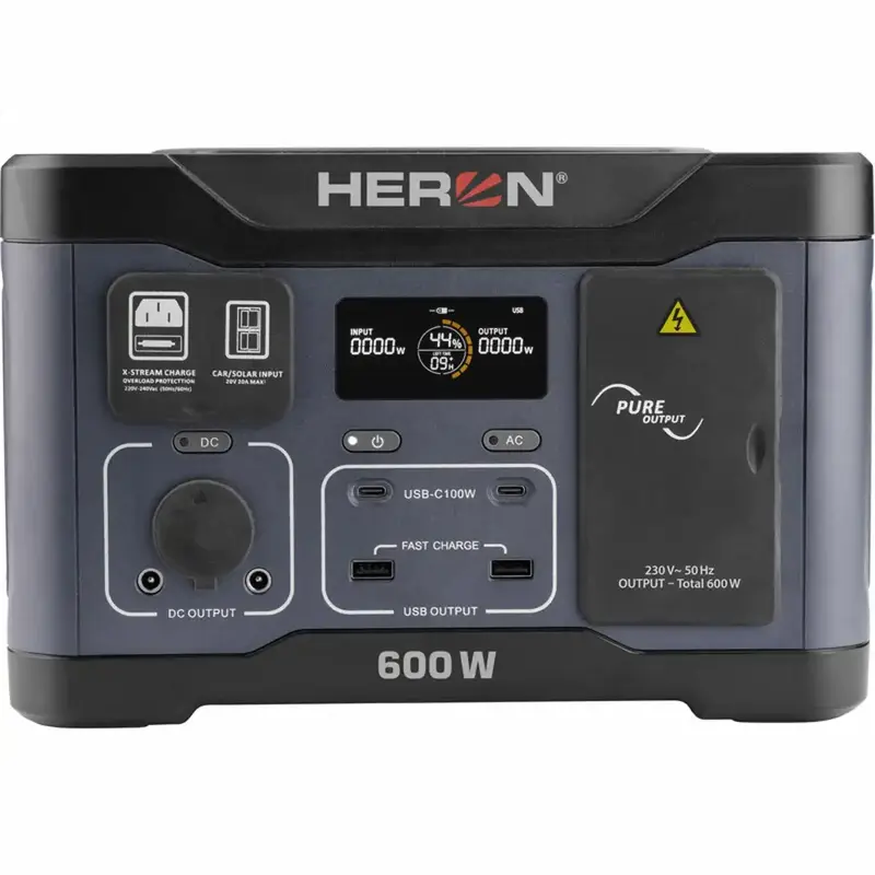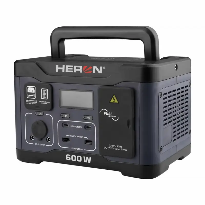 Prenosná nabíjacia stanica HERON je praktický zdroj energie všade tam, kde nemáte prístup k elektrickej sieti – na chate, v karavane, v dielni aj ako záloha pri výpadku prúdu. Vďaka akumulátoru LiFePO4 ponúka bezpečnú a stabilnú prevádzku a invertorová technológia zabezpečuje čisté výstupné napätie na 230V zásuvkách, vhodné aj pre citlivú elektroniku.