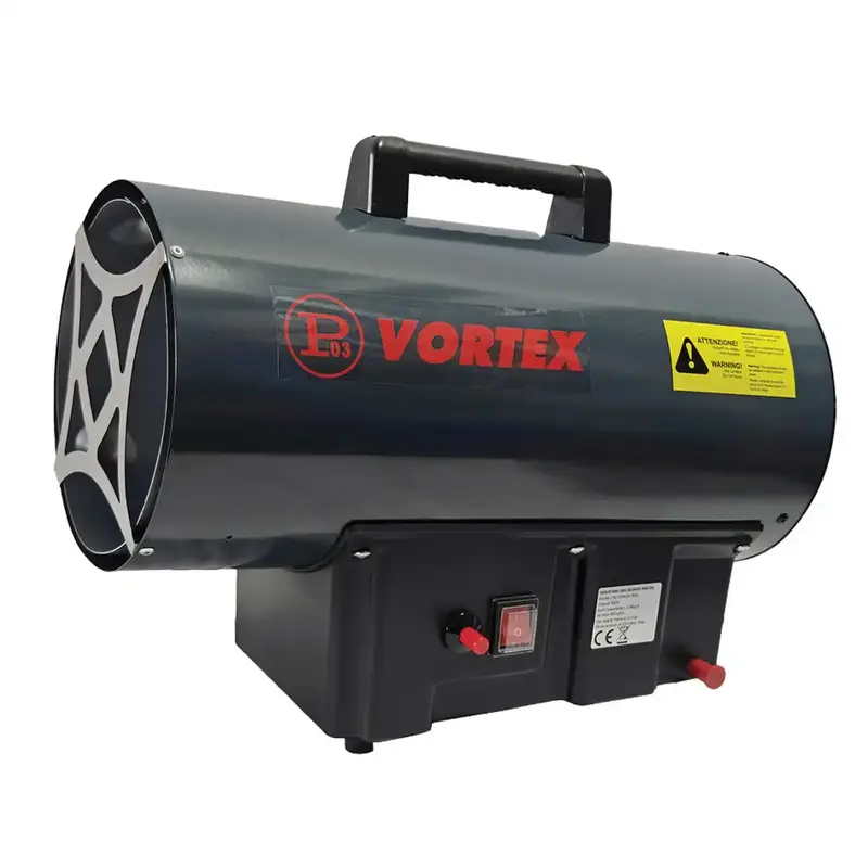 Plynový ohrievač VORTEX s vysokým vykurovacím výkonom je určený pre profesionálne nasadenie v dielňach, na stavbách, v skladoch, halách aj poľnohospodárskych objektoch. Vďaka napájaniu na LPG/propán, piezoelektrickému zapaľovaniu a robustnému priemyselnému vyhotoveniu dokáže rýchlo vyhriať aj väčšie pracovné priestory, kde je potrebný spoľahlivý a mobilný zdroj tepla.