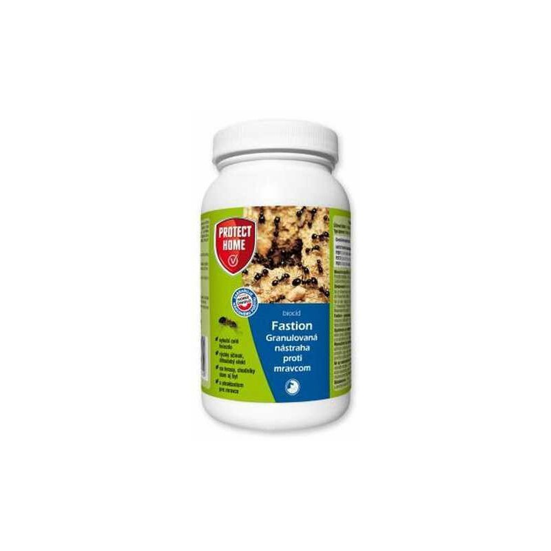 FASTION Insekticídna nástraha vo forme granúl určená na ničenie mravcov( Mravec čierny a príbuzné druhy) v objektoch a ich okolí. Účinná látka:: imidacloprid 0,5g /kg. - vyhubí celé hniezdo (až 13 hiezd) - rýchly účinok, dlhodobý efekt - na terasy, chodníky, dom aj byt - s atraktantom pre mrvce Mechanizmus účinku: Základnú zložku tvorí cukor, preto je prípravok mravcami prijímaný ako potrava, ktorú si mravce odnášajú do hniezd. Prví jedinci hynú po 3-4 dňoch, kolónia je zničená do 2-4 týždňov od aplikácie prípravku. Prípravok obsahuje silno horkú látku (Bitrex), ktorá neodpudzuje mravcov, ale bráni náhodnému požitiu človekom.