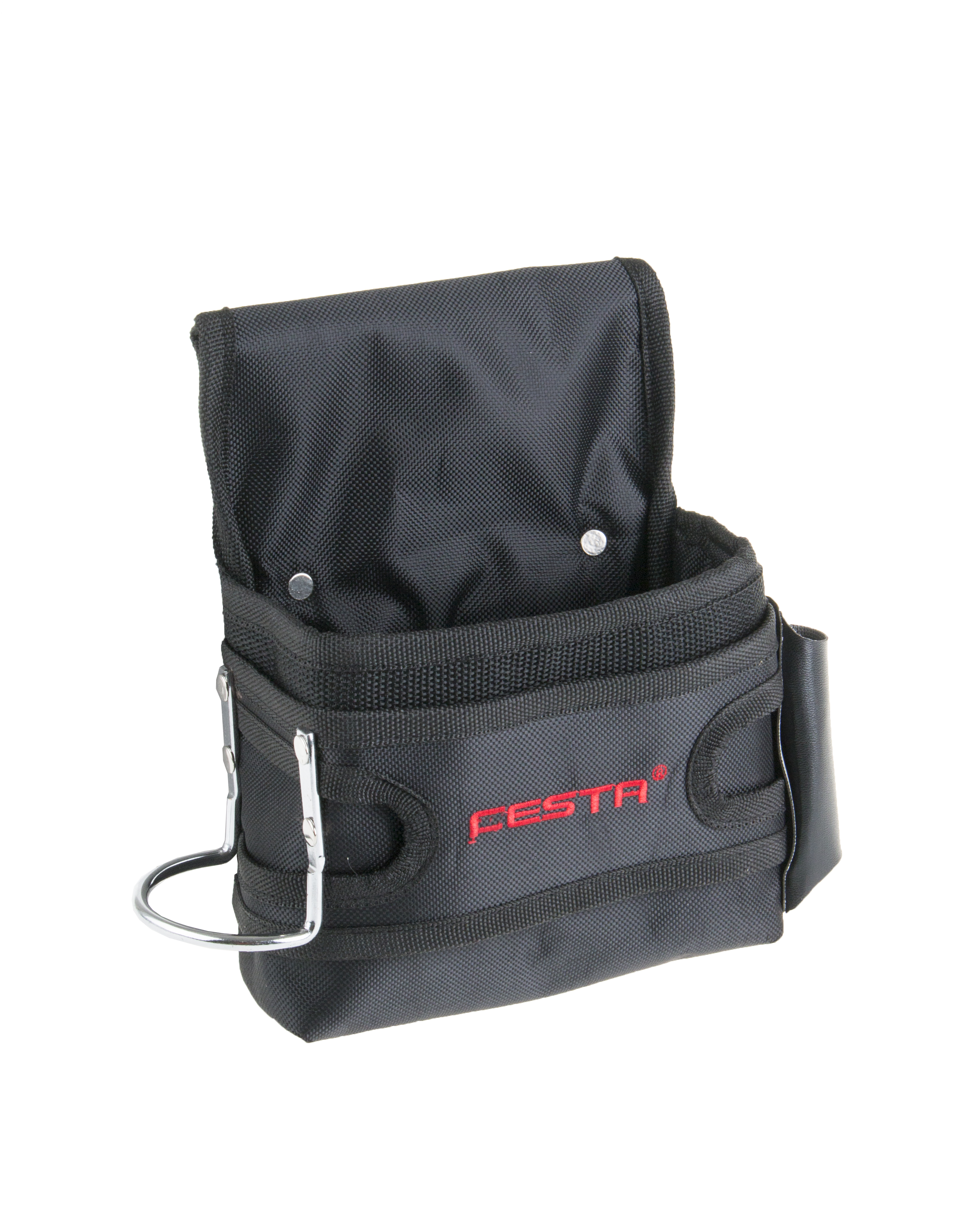 Púzdro na náradie univerzálne, uchytenie na opasok, materiál nylon, kvalitné spracovanie - šité aj nitované, 1 vystužené vrecko, spona na kladivo. Použitie : vrecko pre uloženie napr. spojovacieho materiálu, príp. iného drobného náradia.