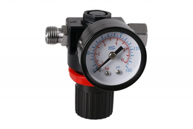 regulátor slúží k nastaveniu požadovanej úrovne tlaku vzduchu v sústave pre jednotlivé pneumatické zariadenia.