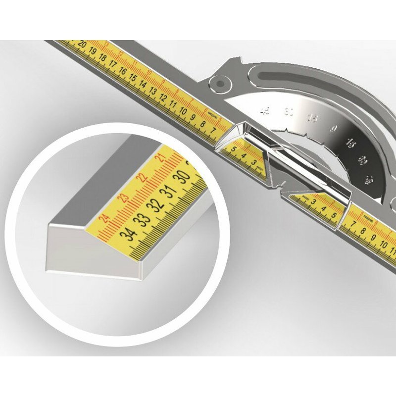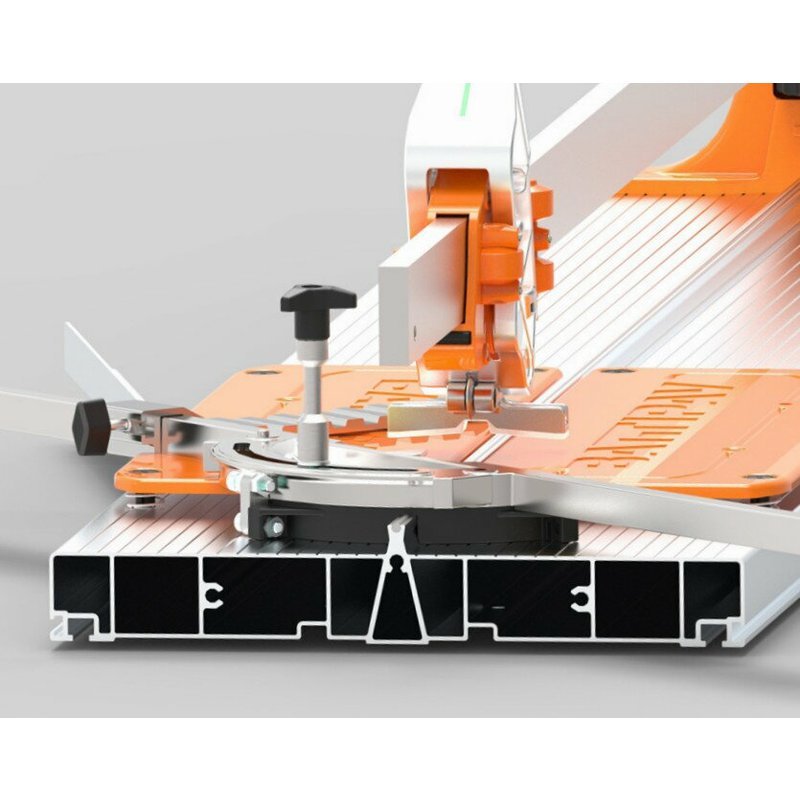 Pravítko z jedného kusu hliníka umožňuje rýchle a presné nastavenie uhlov rezania. Číselné značenie pravítka je naklonené k obkladačovi, pre čo najľahšie odčítanie hodnôt.