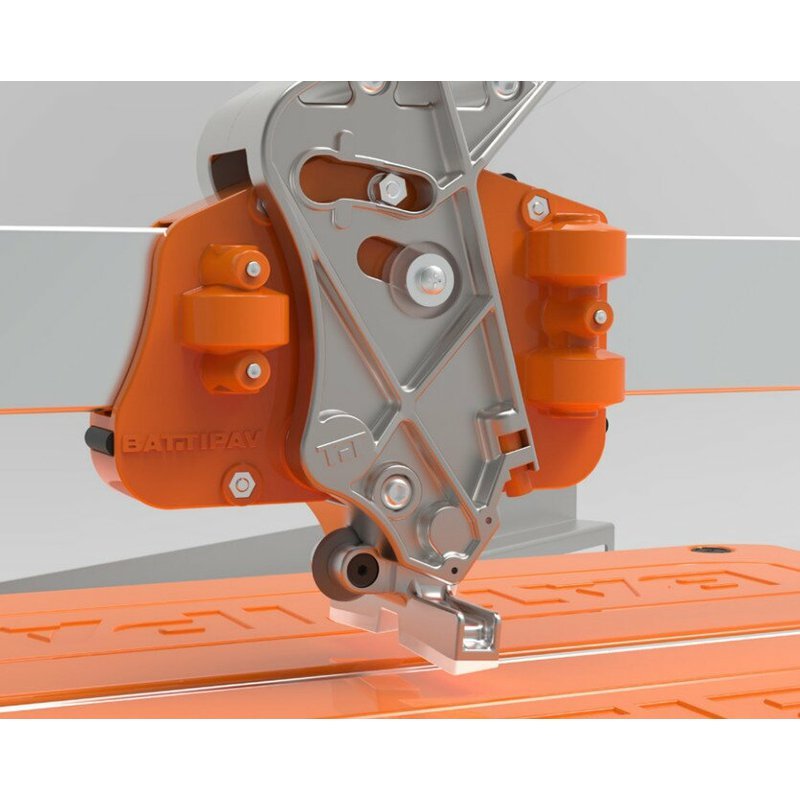 Profesionálna hliníková ručná rezačka dlaždíc BATTIPAV SINTESI je vhodná na diagonálne aj priame rezy keramických a porcelánových dlaždíc. Používa systém rezania "tlačením", ktorý je jednoduchý a efektívny. Telo rezačky je z odolného hliníka, čo ju robí pevnou, ale zároveň ľahkou. Rezacia hlava s 9 guličkovými ložiskami zabezpečuje ľahké kĺzanie a vysokú presnosť rezov. Lámač dlaždíc má magnetické ovládanie a plastový chránič proti škrabancom. Goniometrické pravítko z jedného kusu hliníku je pevné a dobre čitateľné, vhodné na rovné a 45° rezy, s možnosťou opakovať rovnaké rezy. Bočné podpery pomáhajú pri rezaní veľkých dlaždíc. Rezačka je vybavená prepravnými kolieskami a rúčkou pre jednoduché prenášanie.