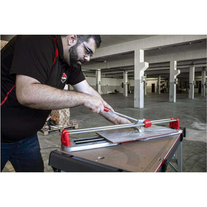 Rezačka dlaždíc Ruby STAR je ideálnym nástrojom pre intenzívne rezanie všetkých druhov keramických dlaždíc, glazovanej kameniny a ďalších glazovaných obkladových materiálov. Je určená na profesionálne aj hobby použitie. Vyniká svojou odolnosťou a separačnou silou, pričom zostáva ľahká a všestranná. Rezačka je robustná, presná a ľahko sa prepravuje, pričom ponúka mobilný separátor s uzavretými posúvačmi pre väčšiu odolnosť proti ohybu. Chrómované oceľové vodidlá s antikoróznou úpravou zabezpečujú dlhú životnosť a spoľahlivosť. Navyše disponuje bočnými sklopnými ramenami pre zväčšenie podpornej oblasti pri rezaní väčších formátov.