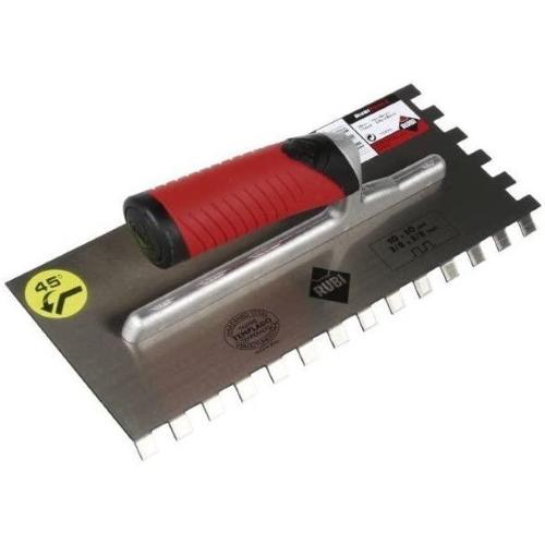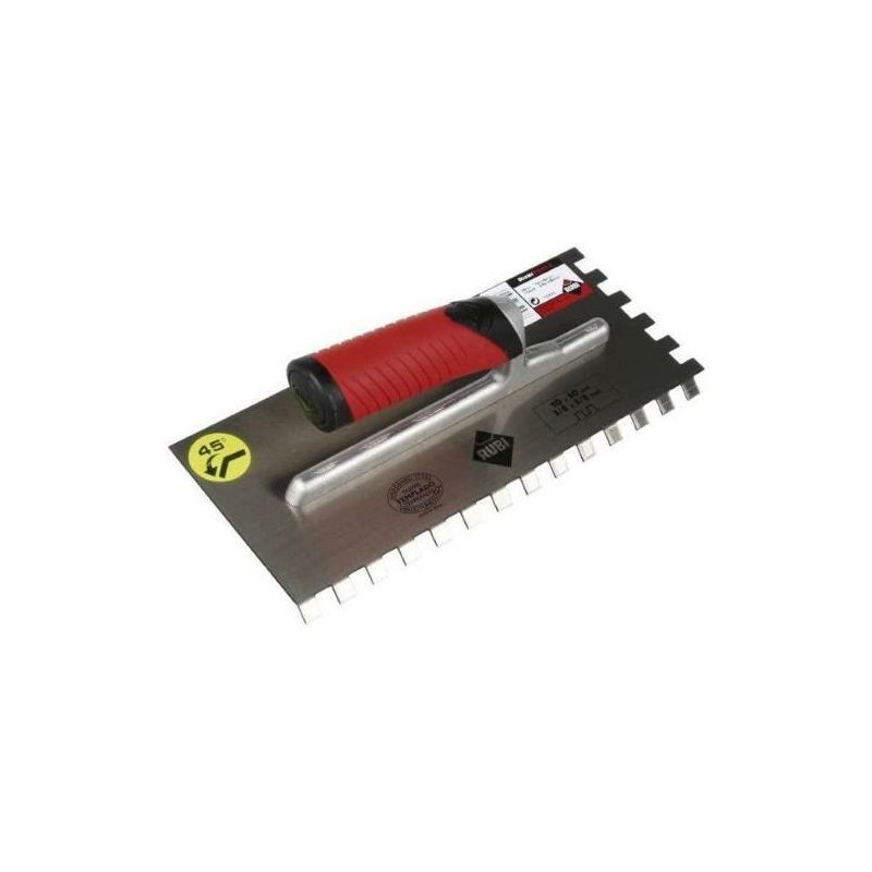 RUBI Hladítko nerezové, zahnuté zuby v uhle 45°, 280x120mm, gumená rukoväť