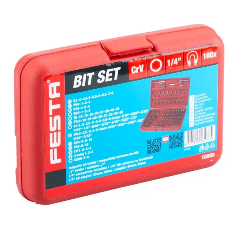 33-dielna sada bitov do skrutkovača, S2 (5036), S2 (5049), SQ, PH, PZ, S, T, Tta, H, Hta, SD, TS, TW, 5/32, 3/16, XZN. Magnetický nadstavec na bity. Nadstavec Y. 1/4 DR nadstavec na skrutkovač. 1/4 bit adapter: 25mm, 50mm.
