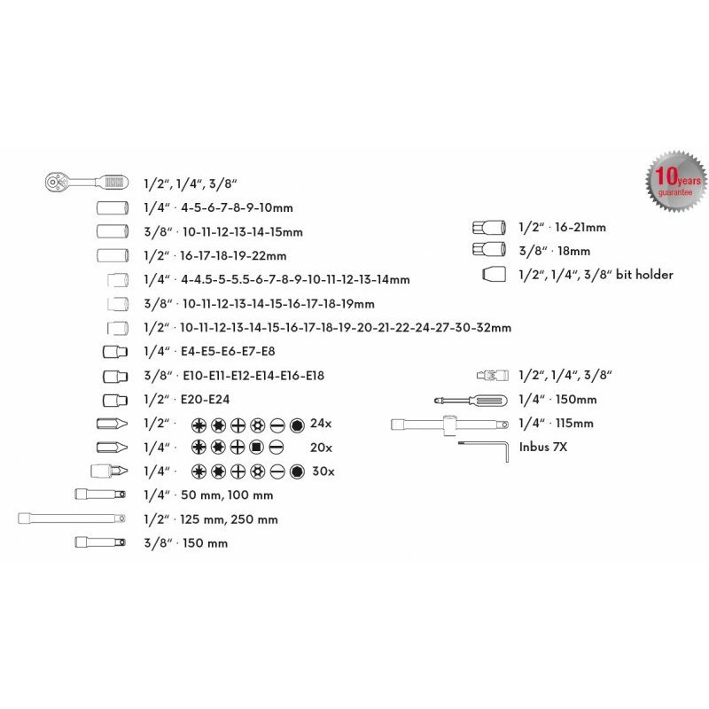 FESTA Sada nástrčných kľúčov 176-dielna, 1/4"+1/2"+3/4"