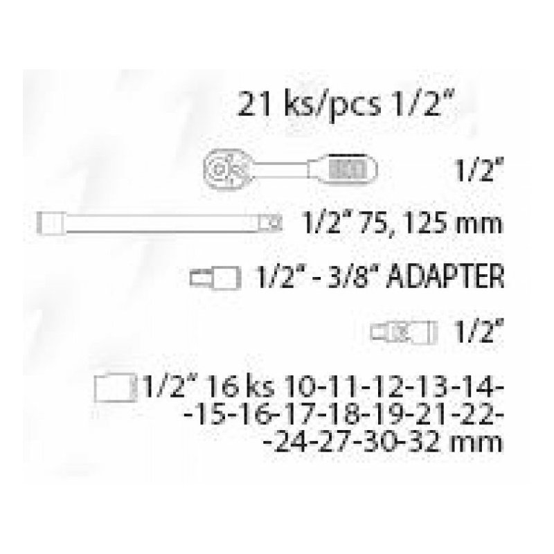 Sada nástrčných kľúčov je vhodná do autoservisu alebo dielne vďaka kvalite použitých materiálov a profesionálnemu prevedeniu. Všetky časti sú vyrobené z vysoko kvalitnej chróm-vanádovéj ocele. Niklová povrchová úprava. Hroty bitov sú zo zliatiny ocele S2. Račne majú jemné delenie prostredníctvom 72 zubov, telo račne je z CrV ocele, zubový mechanizmus z S2 ocele. rukoväť je ergonomicky tvarovaná, pogumovaná zdravotne nezávadnou gumou. Nový design plastového kufra z primárneho materiálu s kovovými uzávermi a pántami na vrchnáku.
