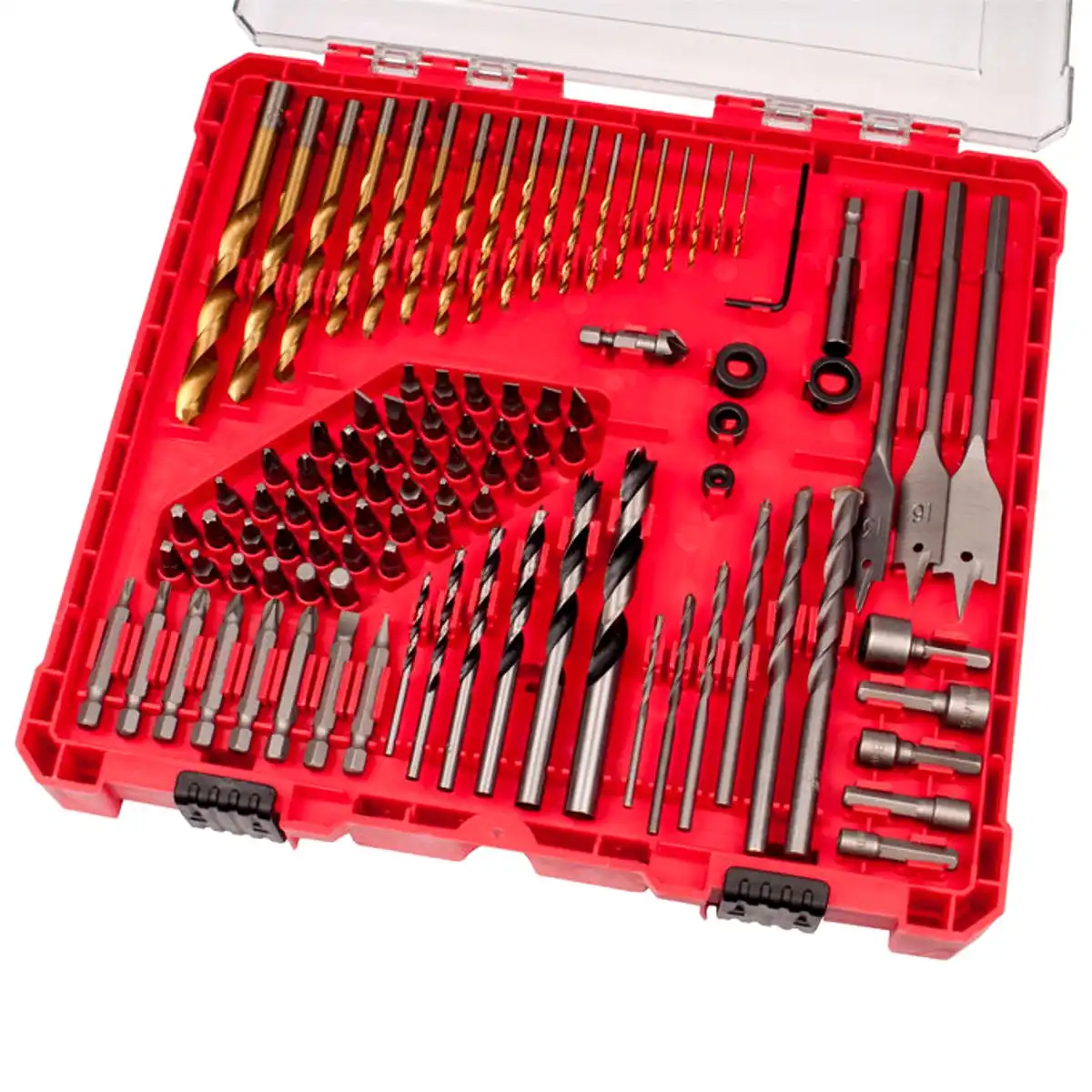 Každý kus má svoje miesto, takže v sade rýchlo nájdete správny vrták alebo bit a po práci všetko jednoducho upracete a prenesiete.