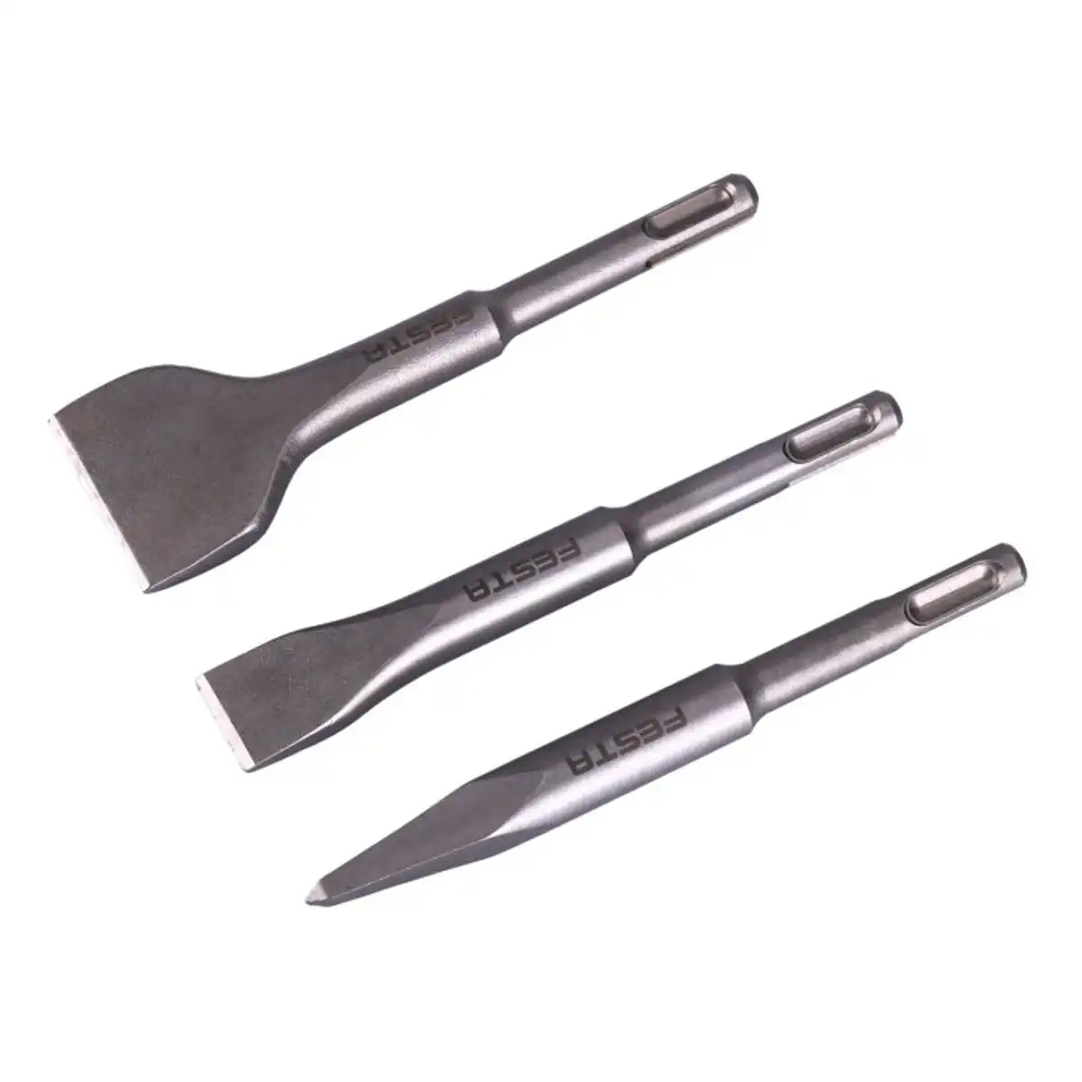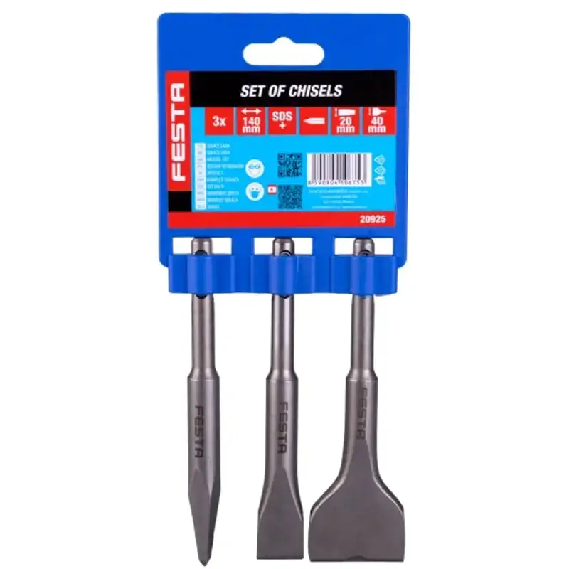 Sada sekáčov FESTA s uchytením SDS+ je praktická voľba pre búracie a sekacie práce, keď potrebujete rýchlo prejsť od bodového sekania k širšiemu odsekávaniu materiálu. V balení nájdete najčastejšie používané typy – špicatý sekáč a dva ploché sekáče – vhodné na betón, murivo a ďalšie stavebné materiály.