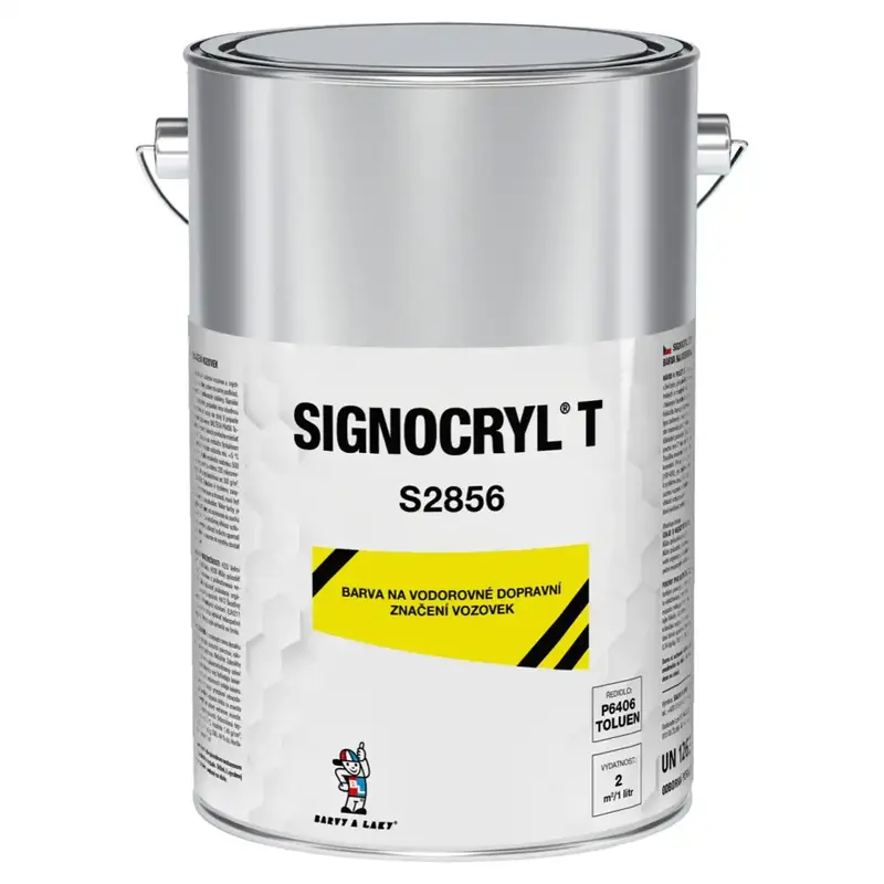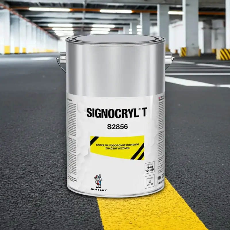 Farba SIGNOCRYL S2856 je určená na vodorovné dopravné značenie vozoviek a iných plôch s živičným, prípadne betónovým povrchom. Farba je vhodná na značenie čiar na podlahách v priemyselných objektoch, na chodníkoch, parkoviskách, športoviskách apod.
