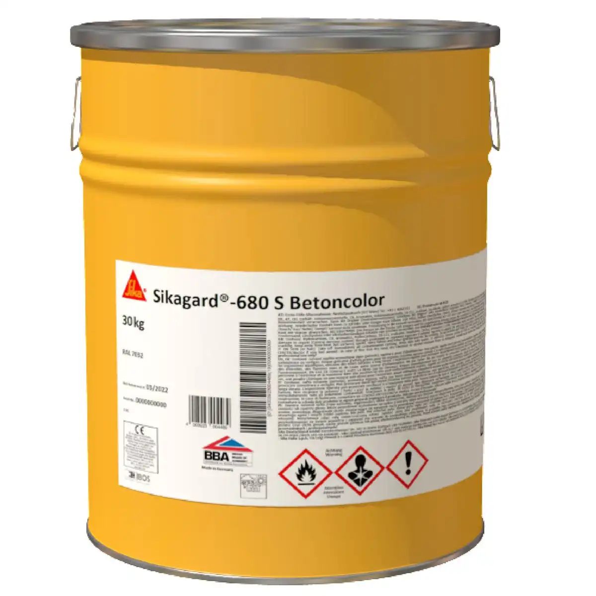 Sikagard 680 S Betoncolor sa používa na ochranu a zlepšenie betónového povrchu a iných cementových materiálov na konštrukciách pozemných stavieb a infraštruktúry. Sikagard®-680 S Betoncolor priehľadná glazúra je bezfarebný materiál vytvárajúci lesklý náter, vhodný na osvieženie povrchu a ako ochranný náter na zaťažený betón. Sikagard®-680 S Betoncolor vrchný náter je matný dekoratívny krycí náter dostupný skoro vo všetkých špeciálnych farebných odtieňoch. Vhodné ako ochrana proti vnikaniu látok (Princíp 1, metóda 1.3 EN 1504-9), Vhodné ako regulácia obsahu vlhkosti (Princíp 2, metóda 2.3 EN 1504-9), Vhodné ako zvýšenie elektrického odporu (Princíp 8, metóda 8.3 EN 1504-9),