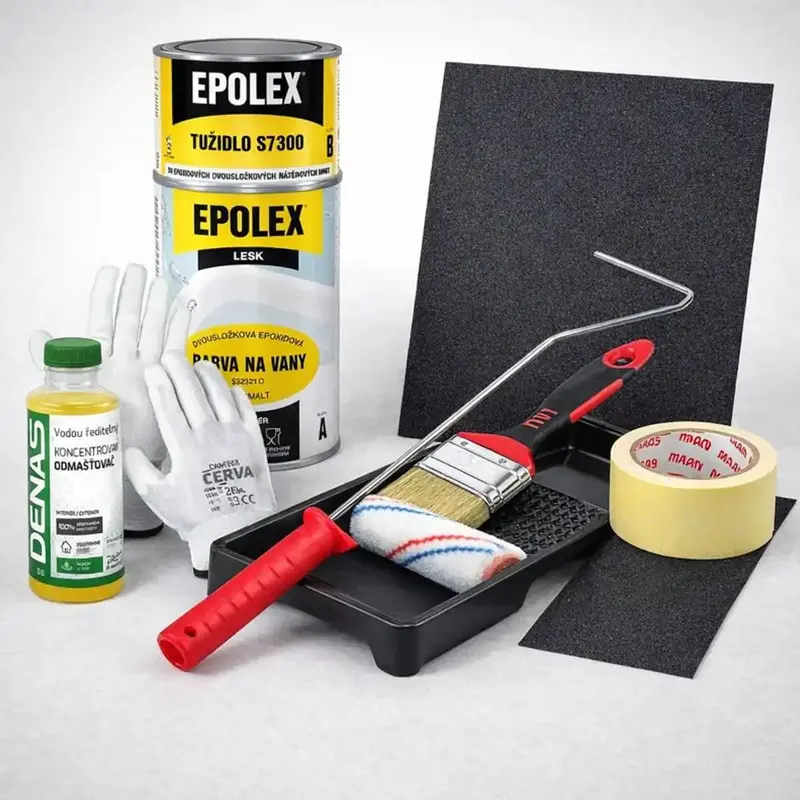 Smaltová vaňa alebo umývadlo môže časom zožltnúť, zmatnieť alebo vyzerať opotrebovane. Tento balíček vám pomôže obnoviť smaltovú vaňu bez zbytočného hľadania všetkých potrebných pomôcok. Všetko potrebné máte pripravené na jeden klik, aby ste sa mohli pustiť do renovácie hneď a bez starostí.