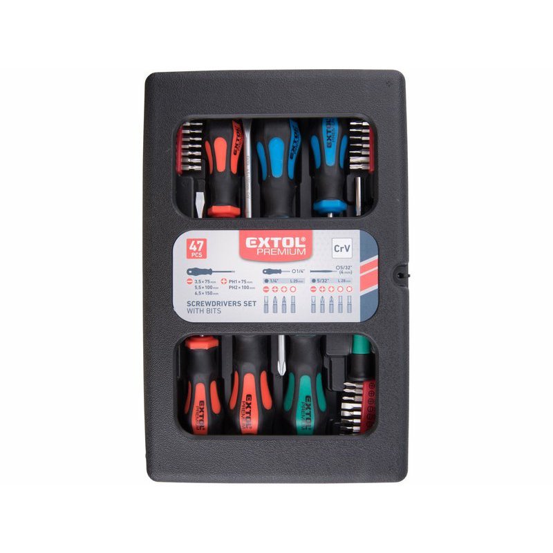 Skrutkovače a bity, 47-dielna sada, (-) 3,5-5,5-6,5mm, PH1-2, hodinásky skrutkovač