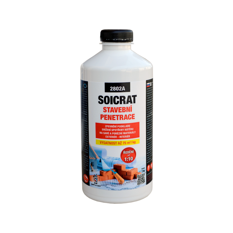 SOICRAT STAVEBNÁ PENETRÁCIA sa nanáša na suchý, prachu a nečistot zbavený podklad v jednej nebo v dvoch vrstvách (podľa savosti podkladu). Vrchný náter farbou je možné aplikovať po zaschnutí penetračnej vrstvy. V závislosti na savosti a na stave spevňovaného podkladu je možné riediť v pomere 1 diel penetrácie a 3 až 10 dielov vody.
