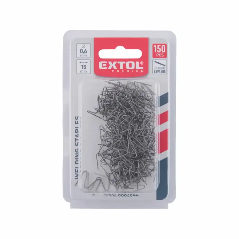 Spona na zošívanie plastov v tvare M je praktické príslušenstvo pre rýchle a pevné opravy prasklín a spojov na rohoch plastových dieloch. Rozmer 0,6 × 15 mm a balenie 150 kusov zabezpečí dostatočnú zásobu pre dielňu aj domácich majstrov.