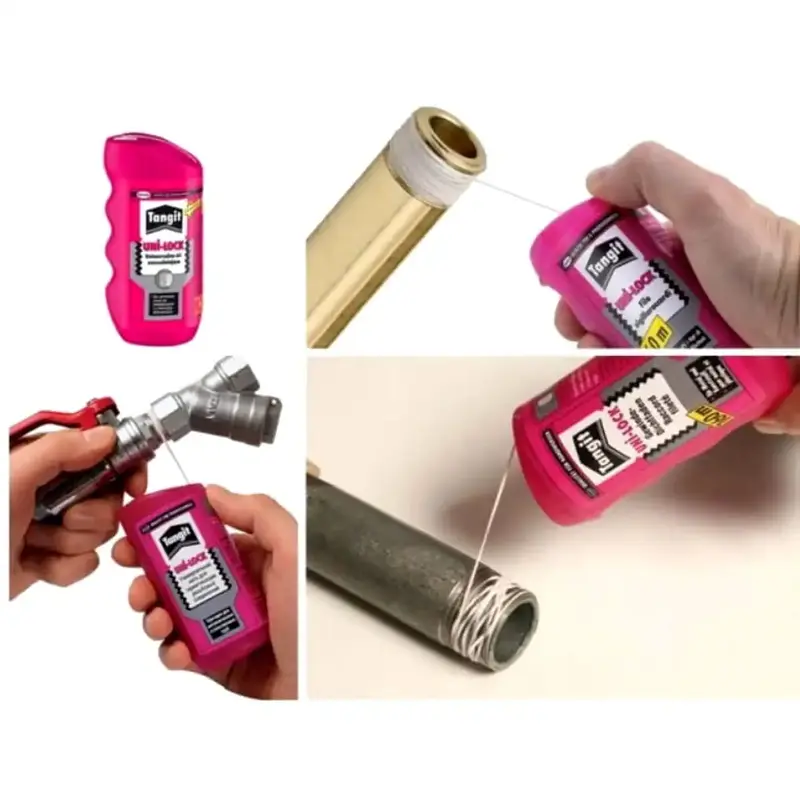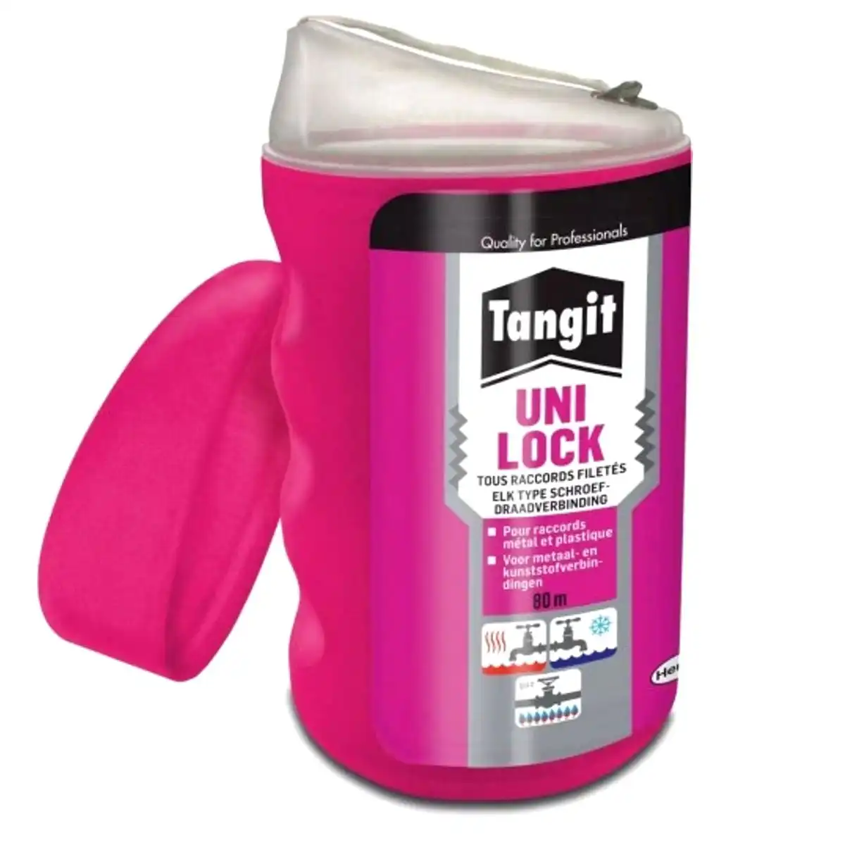 Tesniace vlákno Tangit UNI LOCK je okamžite pripravené na použitie bez potreby ďalších plastov. Umožňuje rýchle nastavenie výpustných kohútikov, okamžité utesnenie potrubí vody, plynu a stlačeného vzduchu. Ďalej sa používa na utesnenie kovových a plastických závitov podľa ISO 7-1 do 4" pre potrubné systémy vody, plynu a stlačeného vzduchu, pripojenie výpustných kohútikov a odbočiek potrubí a inštaláciu potrubí stlačeného vzduchu.