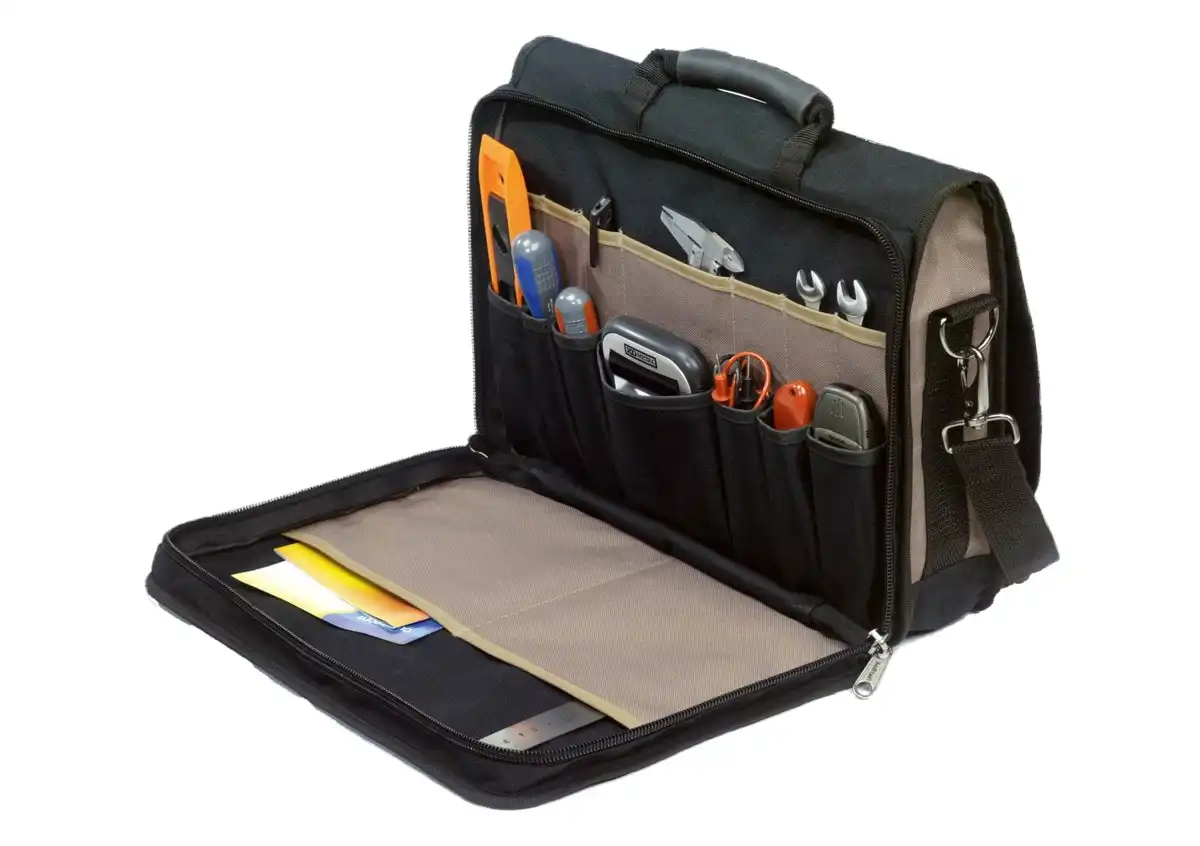 Ramenná taška na náradie a dokumenty ToolPack „Comfort“ je spoľahlivé riešenie pre profesionálov aj domácich majstrov. Odolný 600D polyester, premyslené vnútorné členenie a pohodlné nosenie zabezpečia, že budete mať náradie, príslušenstvo aj kancelárske dokumenty vždy prehľadne uložené a rýchlo po ruke – na stavbe, v dielni aj v teréne.