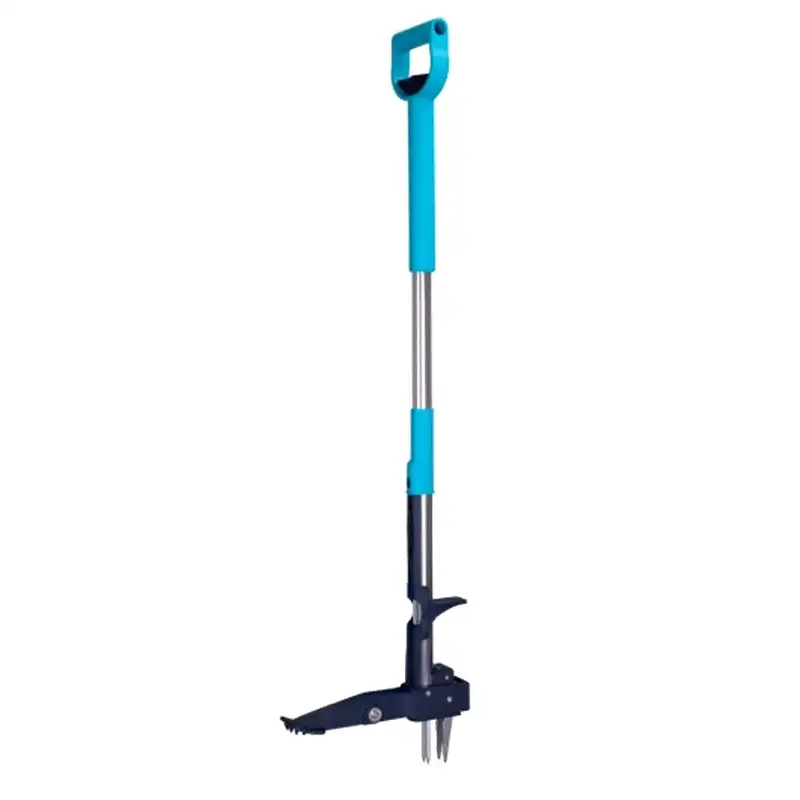 Jednoduchým pohybom páky zovriete čeluste odstraňovača a bezpečne uchopíte burinu aj pri vyťahovaní.