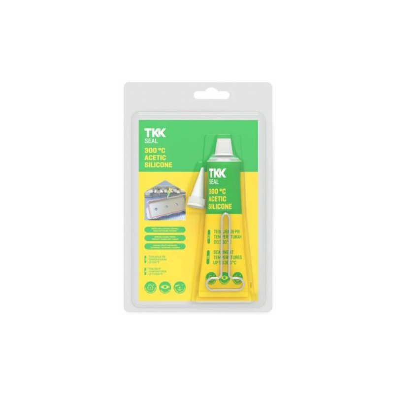 Trvalo elastický tmel TKK SEAL 300°C ACETIC SILICONE sa používa na tesnenie dielov, ktoré sú vystavené vysokým teplotám. Tmel má vynikajúu priľnavosť k väčšine silikátových materiálov, sklu a hliníku. Po vytvrdnutí má vynikajúce mechanické vlastnosti. Silikónový tmel TKKSEAL odoláva širokému spektru chemikálií, atmosférickým vplyvom, UV žiareniu a starnutiu. Je vhodný na utesnenie dielov, ktoré sú vystavené vysokým teplotám, napr. v motoroch, na utesnenie vykurovacích telies v rôznych zariadeniach a na výfukové potrubia.