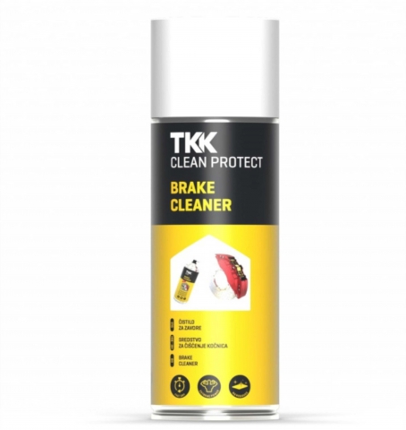 Sprej na čistenie bŕzd TKK CLEAN PROTECT BRAKE CLEANER 400ml. Výkonný a rýchloschnúci čistiaci prostriedok na brzdy a spojku. Rýchlo odstraňuje oleje, mazivá, brzdové kvapaliny a nečistoty z brzdových kotúčov a doštičiek, čím zvyšuje brzdný výkon.